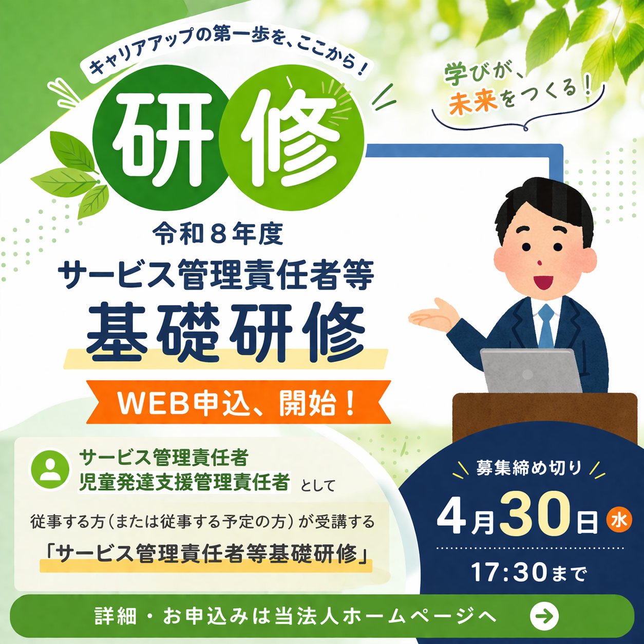 現在、当法人ホームページ内で募集を開始しております!