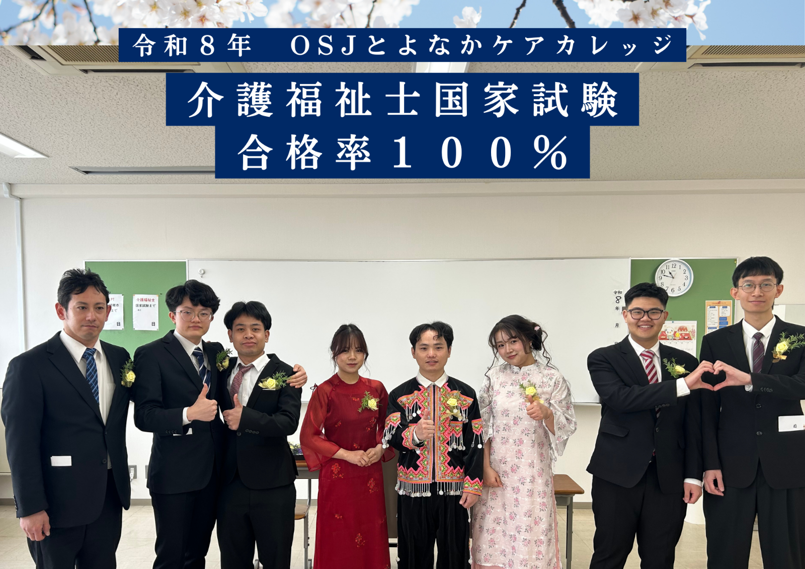 このたび、OSJとよなかケアカレッジは、介護福祉士国家資格 合格率100%を達成しました!