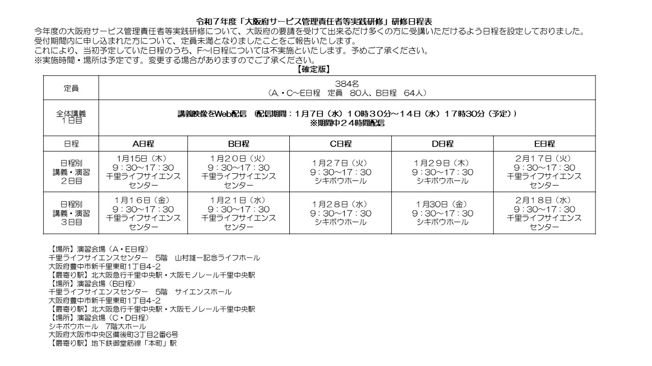 ●大阪府サービス管理責任者等更新研修については、大阪府及び地域福祉推進財団へお問い合わせください。